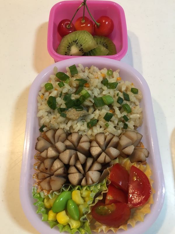 グッモーニン! 今日はどれ位暑くなるのかなぁ? お弁当は⭐︎ 焼豚とネギの炒飯(←この為に昨夜は煮豚作りましたぜ(笑) ズッキーニと大根のそぼろ炒め煮 さくらんぼって 入れるだけで可愛さ猛烈アップになる😍 やっぱり可愛いフルーツなんだ❣️(この歳で発見) ちなみに昨日のインゲンと人参の豚肉巻き、 玲さんは豚肉だけ食べました😄 想像通りでうけたわ。 さ、陸の小学校へ行って、遠足の写真選んで そのまま買い物へ行って来ます! 今日は玲の写真をお金入れて出したんだけど このイベント毎の写真代、バカにならないですぜ〜😂