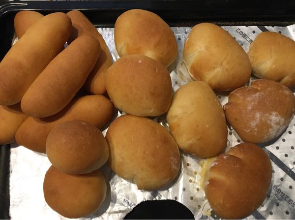 こんにちくわ。 陸の写真を選んだり、買い物行ったりの午前中。 午後は夜ご飯のシチュー 鶏モモ肉、玉ねぎ、人参、じゃが芋、インゲン、 マッシュルーム ↑もう少し暑くなるのかと思ってたので 作るのどうしようか迷ってたんだけど 思ったほど暑くなって来ないので😅 これからなのか? あとは小豆缶。本当は白玉に使おうと思って買って 数ヶ月… なので、水分飛ばして陸も私も大好きなあんぱんに❤️ 左の上下2個以外はあんぱん♬ 他に 何となく、ドッグパン。 ホットドッグ作りたいな、と思ったけど、コッペパンないや。と先日諦めた思い出から。 そのままバター付けてかじって終わりそうだけど😂