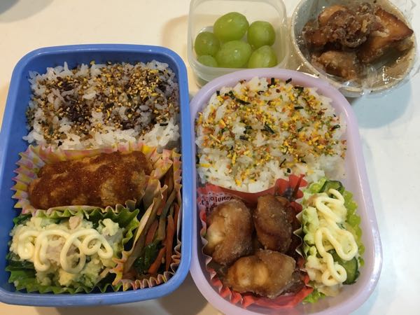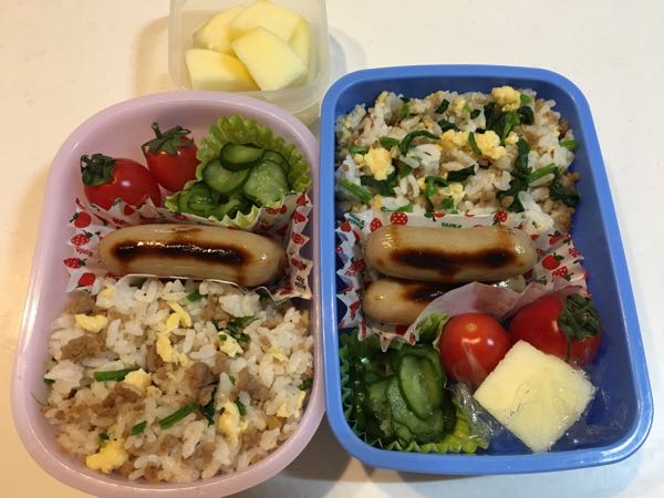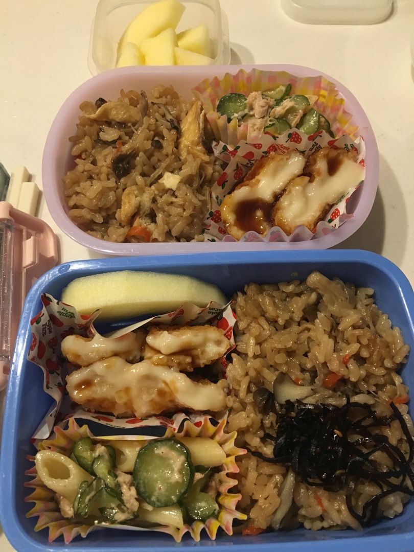 早く咳終われ〜〜 なんと長いんでしょうか。。 今日は仕事無しで家のあれこれ💦 朝から郵便局行ったりコンビニで支払い済ませたり そのまま大量の買い物したり… で、郵便局でもう1つやる事あったのに 忘れて帰宅😭 また後で行くか。 今日は1週間ぶりに陸が登校(笑) 体力大丈夫かな?ちと心配。 今日のお弁当に入れるつもりだった炒飯、 昨日のお昼に3人で楽しく食べてたので 何が良いか玲に聞いたところ、 小さなおにぎり!あとコロッケだけ! との事でしたので、 チャンプルーも作って入れておきました😁 残すだろうなぁ。 でも、小松菜も厚揚げも玉ねぎも入れてないんだから 食べましょう。 と、思いながら詰めた。