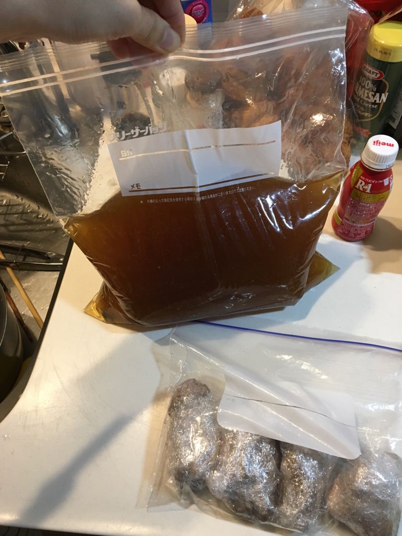 仕事2日目休憩中でございます🌟 胸の痛み、昨日よりだいぶ楽。。 朝はキッツかったから嫌だなぁと思ってたけど 良かった😊 私以外の3人は今頃何をしてるやら。 一昨日から豚肩ロース塊り肉を煮豚にして 昨夜小分けにして冷凍♬ この汁、ラーメンか何かに使うのか、夫用?に保存。 昨日は夫母から子供達に洋服が届き それと洗濯したのでいっぱいいっぱい!! 具合も悪かったので今夜用の豚汁は 帰ってから作らねば😅 間に合うかな〜〜 明日で3連勤最後。