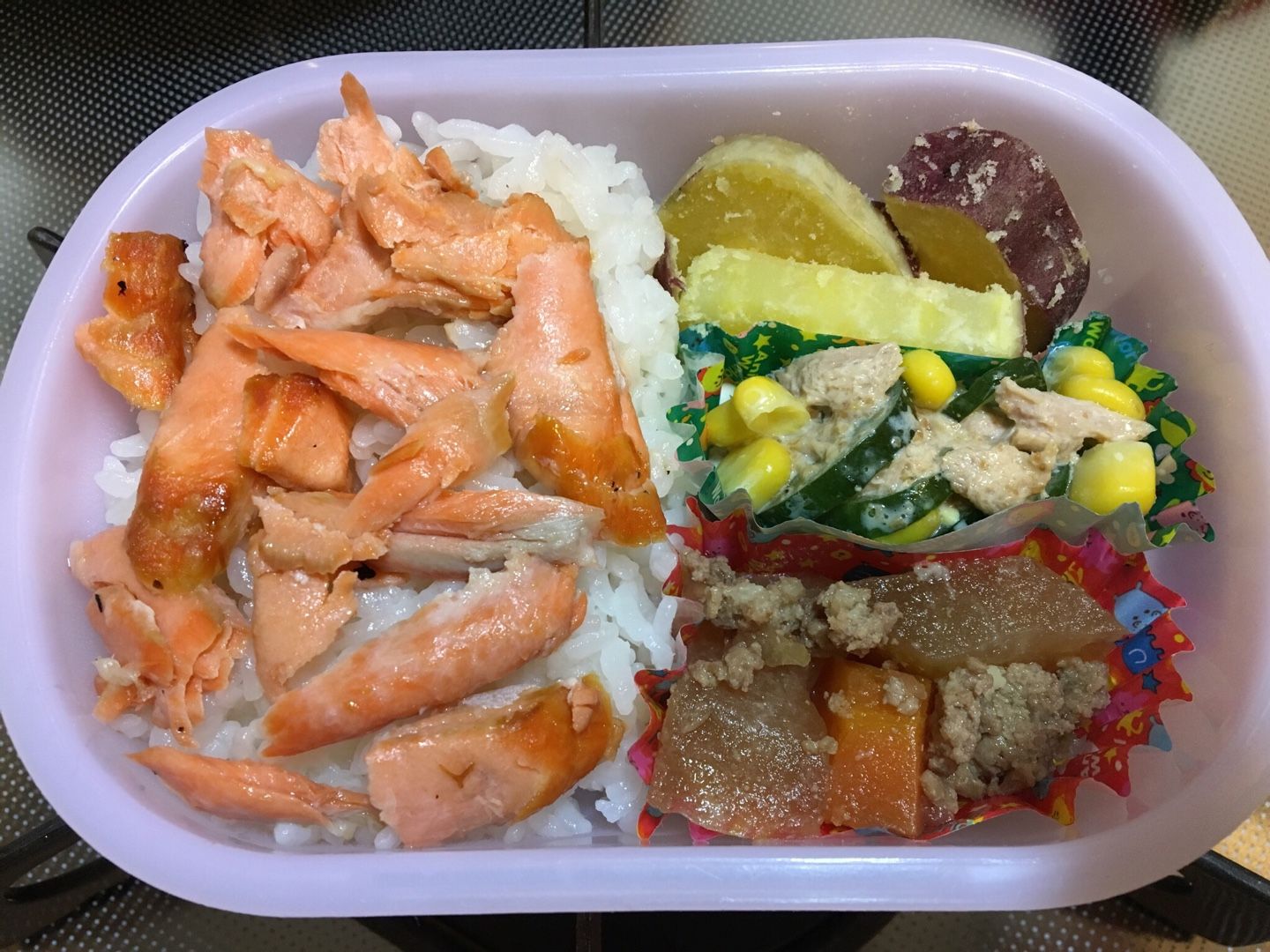 予想してたより寒いな。。 今日はあと20分もすりゃ 玲の体操参観行く時間でっす。 ホールでやるって言ってたから良かった😄 外は寒いぜ ごちゃごちゃした日だな😅 粉ふきさつま芋、ツナ胡瓜コーンサラダ、 大根と人参のそぼろ煮、紅鮭ご飯 まさかのデザートなし😂ごっめ〜〜ん💦 明日は午前保育なんだけど、 お弁当とシート持って来てね!!公園で食べるから!!と、 一昨日から言われてます😂 は〜い。。 さてさて本日もやる事たっぷり。 頑張るぞ!