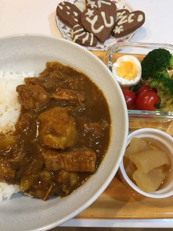 ほんっっとに寒かった… 結局、幼稚園終わりの2時まで連絡はなく 今日は延長保育希望していたので 本来なら3時半まで。 そこを3時過ぎに、ばーばの携帯に園から連絡が入り 37.3なのでお迎え。 家までずっとじーじが抱っこし、 帰宅後 即寝たとの事。 私が4時半過ぎに帰宅し、少しして起きたので 余程疲れてたんだね。 熱は夜になって少しずつ下がっては来たものの 食欲もなく、明日はお休みだな😔 夕方、じーじにお礼を言って バレンタイン😊💖 手作りで何かプレゼントしたかったけど 今年は仕方なし。 実は玲、幼稚園は皆勤だったんだ。 明日、初めてのお休み。 少し残念😂 ま、仕方なし。 私も正直、今日は仕事がしんどかった💧 まだまだ本調子に戻らない…長過ぎるぜ 夜ご飯はカレー。 美味しくて食べ過ぎたけど 調子悪いと食べ過ぎもこたえる… 明日は味噌汁飲みたい… 夫飯カレー温め中。 デザートのバレンタインクッキー♬✨ 胃がいたた。。。