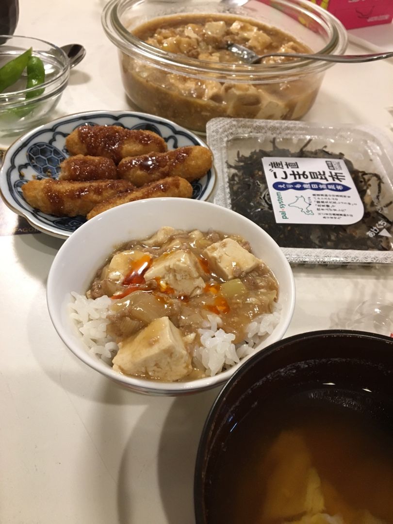 寒かった😂 そういえば玲のお弁当、果物が無くて クロワッサンにイチゴジャム挟んで持たせたもんで 食べにくかった??って聞いたら、 『パクッてぱべた(食べた)から大丈夫!』 とさ😊 ぐっったり疲れてさっさと夜ご飯🌟 タコライス〜💖 ケチャップ、マヨ、タバスコ追加‼️ おいぴー😍 トマトも美味しい。ザクザク混ぜて食べるんだけど やはりトマト不味いとマズイもんね。 夫にゃこちら。 味噌汁は温めて。 ちなみにタコライス嫌いな玲はサンドイッチ。 いや〜〜疲れました😓