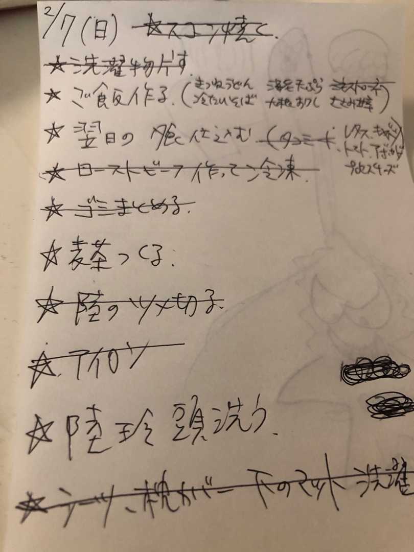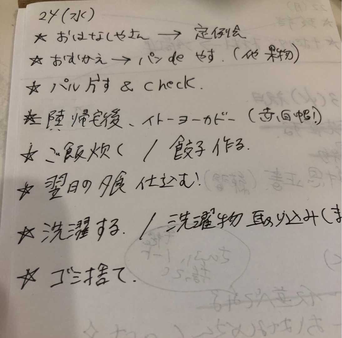玲のクラス(年長さん担任)の先生が ここ1週間、発熱でお休み🥲 定例会で既に明日の卒園遠足は欠席の旨を聞いています。 とっても残念です🥲うぅっ しかも、まだもちろん公表されていないのだけど 今年で退職されるんです🥲うぅぅぅっっ 玲が去年担任だった先生←今は年少さん担任 も一緒に退職。(´;Д;`) 遠足に一緒に行けない事を、玲はとても残念がっているけど 仕方ないね(´;Д;`) この後の卒業式までの僅かな日々を、一緒に楽しく過ごして欲しい✨✨ うぅぅぅっっっ😭 熱々餃子、陸も玲もたっぷり食べました🌟 夫のは、帰宅後焼こう。 明日は年長さんを見送って 14時半前に小学校へ行き、陸の作品(展覧会) を見て(30分で💦) 15時から、幼稚園にて 謝恩会リハ! あーーー、もう卒園遠足かぁ!!!