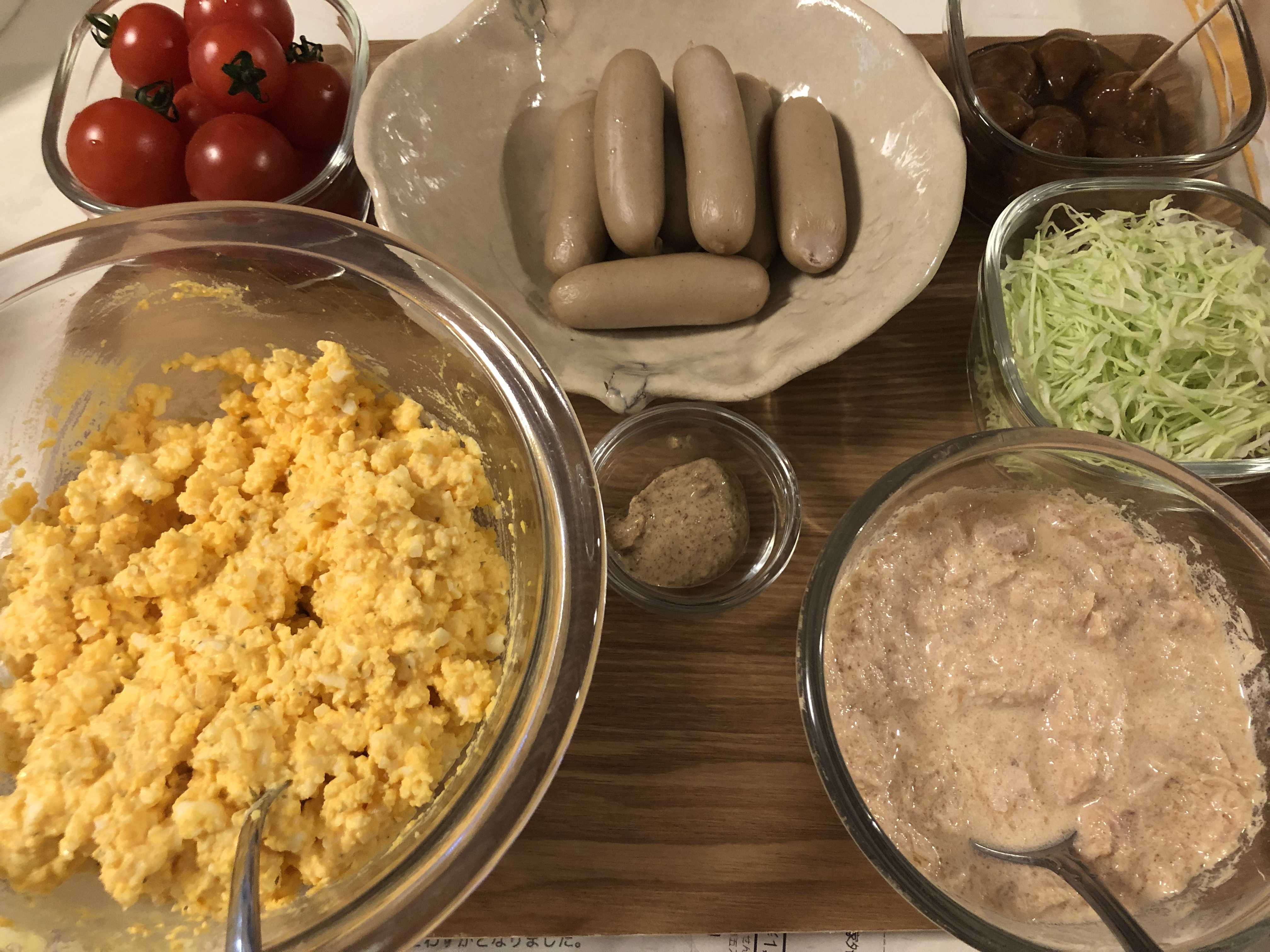 グッモーニン🌞昨日の寒気、鼻水、頭痛、ホントにイヤでお風呂も寝る前に再度入りビタミンC×2、ビタミンBも飲み。。今朝頭痛は相変わらず。熱はなし✨でも大事を取って明日の野球試合はやめとくことに。🥲野球練習挟んでの家ランチは各々セルフサンド♪一応夫には梅干しおむすびも♪午後は薬局行って後は洗濯やらご飯仕込みやら。生理前、マジでこわい。。。