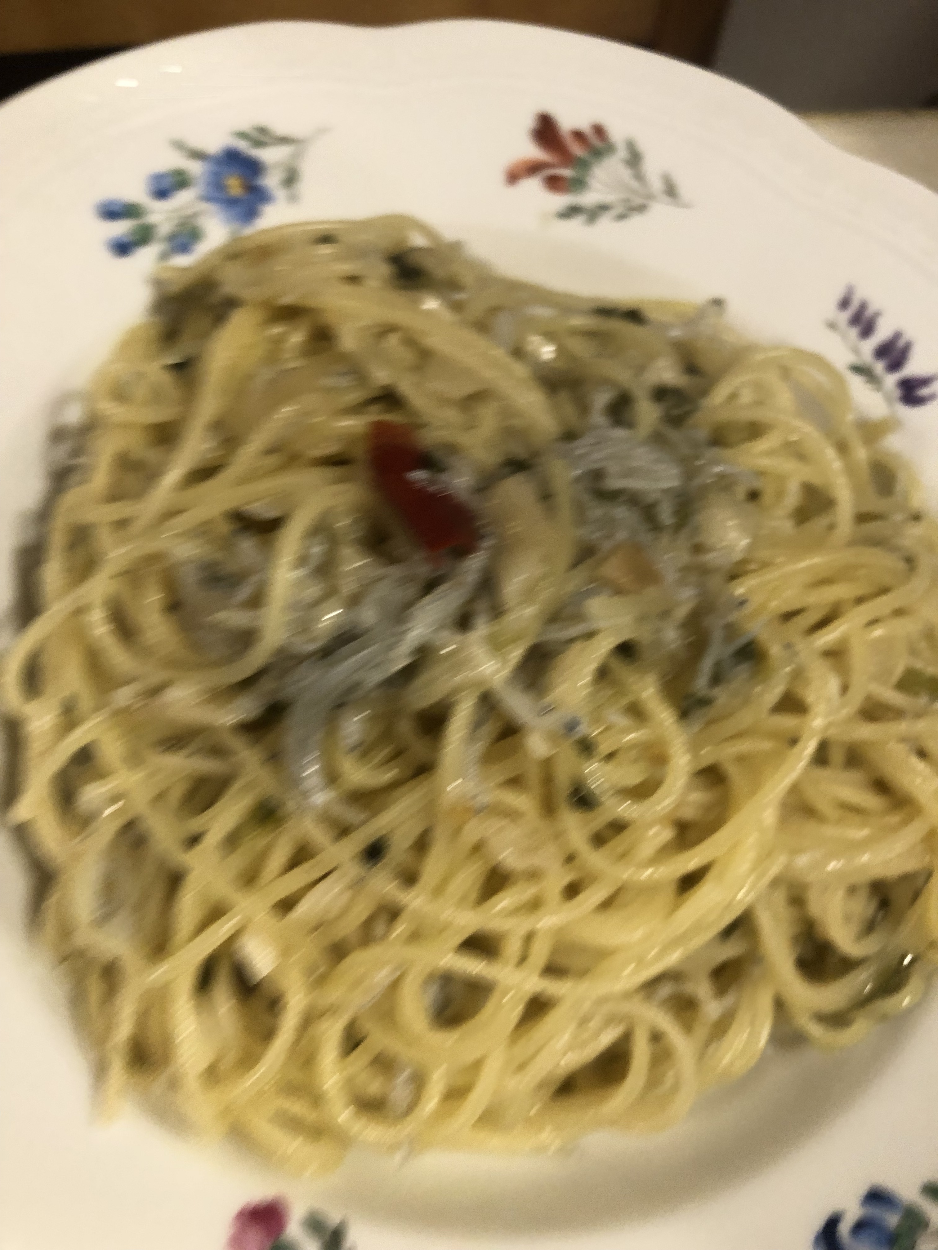 陸もすぐ食べると言うので、シラスたっぷりのぺぺも仕上げて