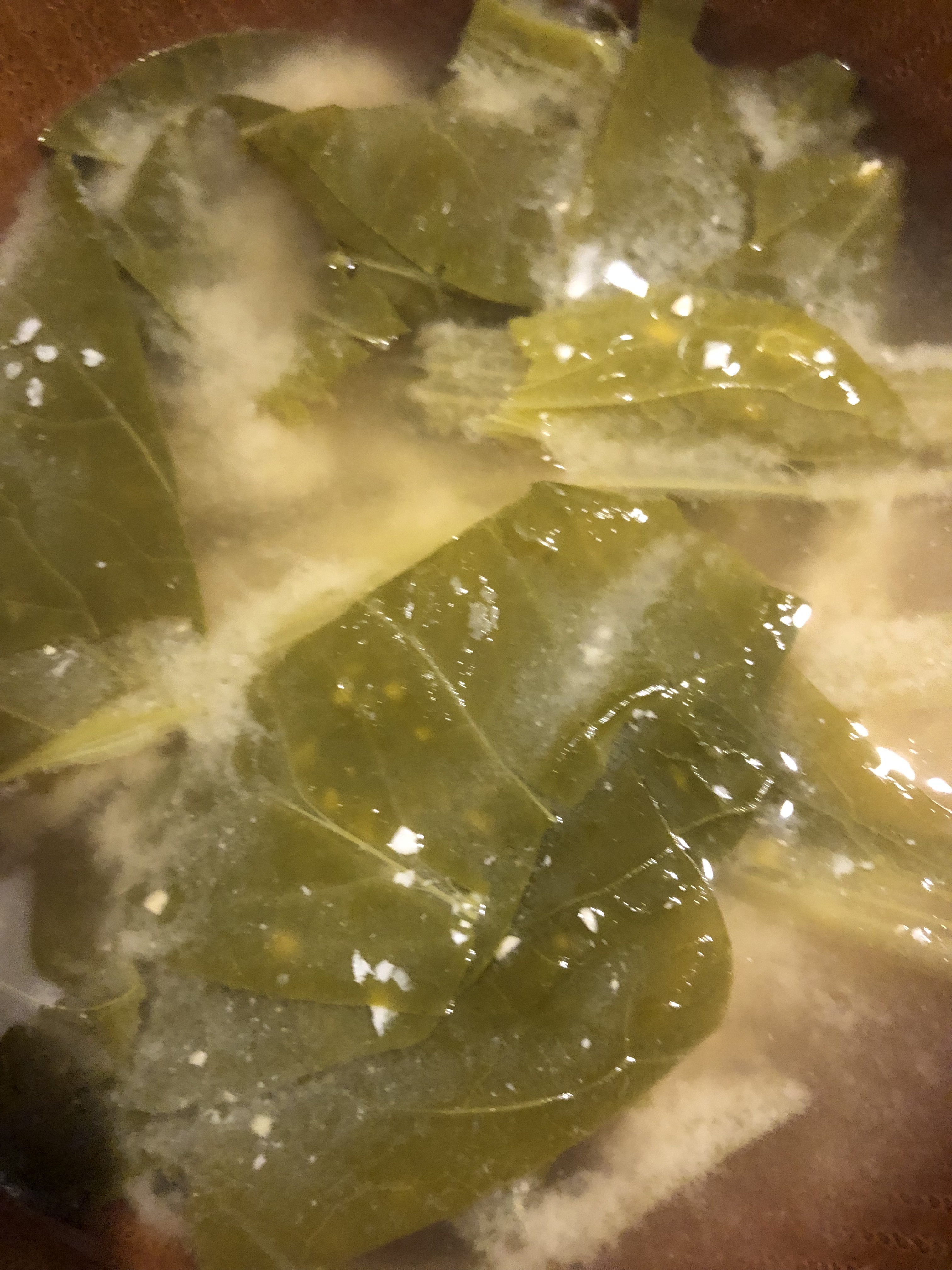 茹でた春菊リーフ、スナップエンドウ、キャベツ