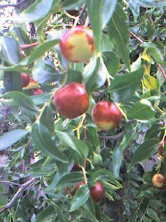 三年前に植えたナツメ(クロウメモドキ科ナツメ属)の木が、今年やっと鈴なりの実を付けた。