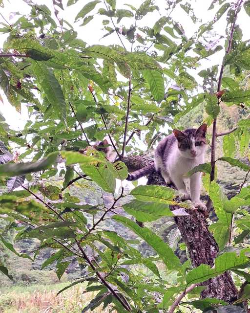 すぐ近くの栗の木に登って大はしゃぎ