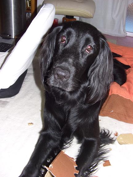 昨日からの咳は、ちょっとだけ増えたかな~夜、布団で一緒に寝ていたとき何度か咳き込んで苦しそうでした。今は、下の写真のとおり段ボールの箱を破壊して喜んでます。 症状は、静かにしていればそれほど咳は出ないんですが・・・この黒い悪魔に静かにしていろ!って事は絶対に無理。ちょっと動いてはごほごほ。 でも、微熱のせいかちょっとだるそうです。微妙にト~ンダウンのCooちゃんでした。