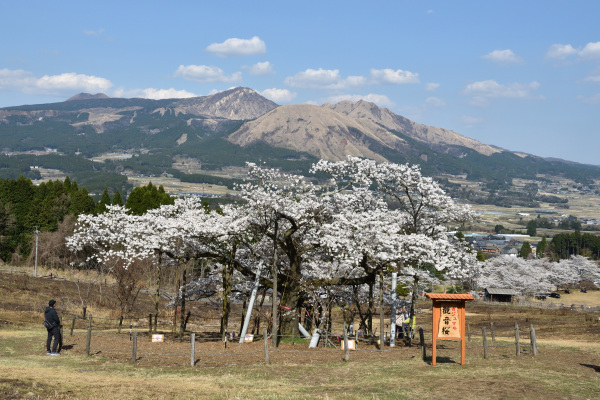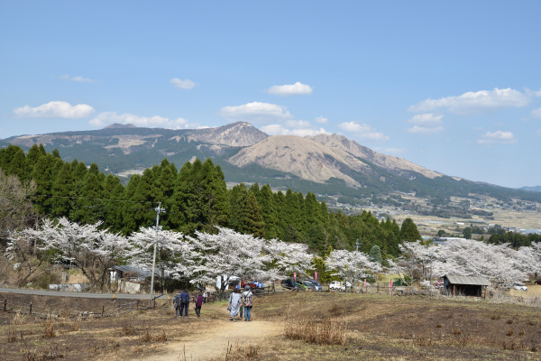 阿蘇を背景に桜が見れるところをいろいろ探したんですが、休園中だったりで今一つ適当なところが見つからず・・・ネットで見つけた場所です。