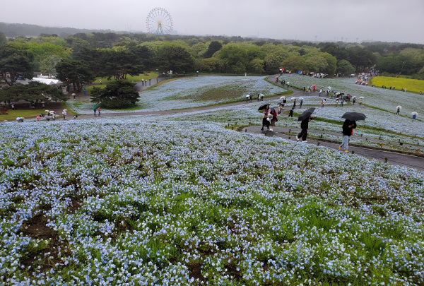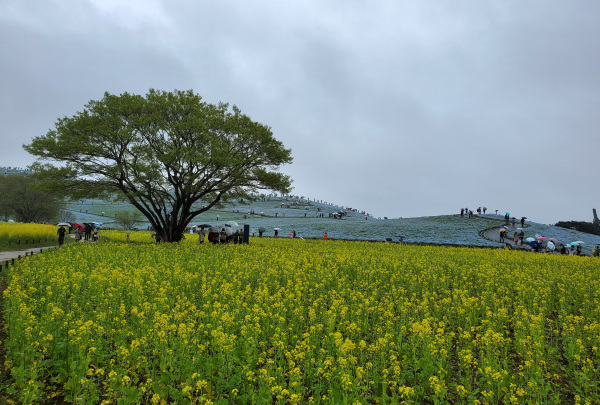 遠く向こうには観覧車が見えたり、右側には菜の花畑も見えます。