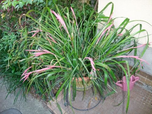 メリープさんからもらった不思議な名前の、 そう ヨウラクツツアナナス 不思議な花が咲いています。