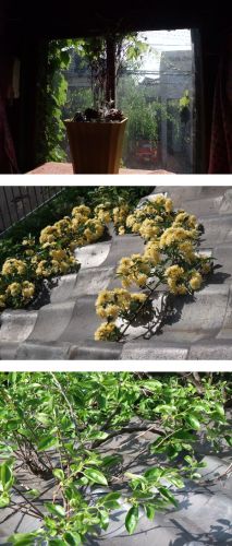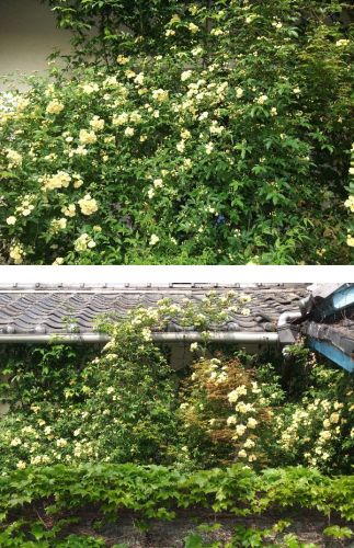 昨日重いもの動かしたからか、からだが軋むなと朝感じている。マイナスな感じをもつと伝染するのか食後感もあまりいいとは感じなかったりもする。甘さは甘さに残ってしまっている、というような。 人の体はいつも揺らいでいる。生きているからね。 世直しも出来ない間に、取り返しもつかない深刻なことになっているけれど、もう慣れてしまうとそれなりに生きることもできるだろう。 人間であるからこそ辛いこともあるけれど、人間であってよかったなと思うことのほうが多い。 何見ても、これはこれでいいなという感性があるのも人間であってよかったなと思う時だ。古家の2階に花を植えているので、水遣りにあがると、これはこれでいいなと思った。 。。。 30センチぐらいだったモッコウバラが、いつのまにかこんなになった。イメージどおりになってきた。