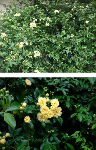 モッコウバラの蕾が膨らみ始めた。 咲いてるのもある。 実は屋根までかけあがってきている。 モッコウバラは決して花期は長くないから、花の時期以外は鬱蒼とした感じが広がってゆく。 それを快しとしない人もいるし、家族もそうかもしれない。褒めてくれた事はないからだ。 僕はほんとはこの古家を、危険住宅ではあるけれど老いるままにしたいのだ。だから、蔦が家全体に巻きつくのも、庭がツルニチニチソウだらけのジャングルになるのも僕として望ましいイメージで、ひとつの完成形なのだけど、妻は蔦で壁がやられるからとってくれと言うし、ツルニチニチソウは駆除撲滅して家周りをすっきりしたいのだ。不満だけれど僕はそれに従ってきた。だから、だからせめてモッコウバラだけは守りたいとささやかな抵抗をしているわけなのだ。 僕は、蔦だらけで家の壁が穴だらけになっていっても、夏は断熱してくれるし、冬は少しは断冷してくれて、外観は緑で家の老いを隠してくれることを望んでいた。足元がツルニチニチソウだらけになっても、いいグランドカバーだし、夏は少しは涼しげだし、花は可憐で好きだし、もう幸か不幸か僕が嫌いな蛇はとっくに居なくなったし、緑滴る環境で自分も老いて行き、ふと気がついたら息を引き取っていたということでいいとそういうふうに思っているのだ。 珍しく愚痴を言ってしまった。