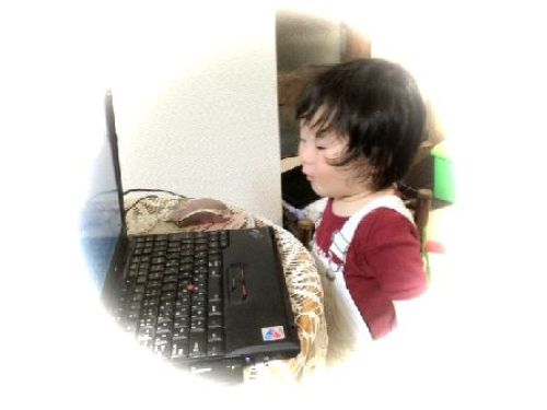 マウスをどうしても触りたがるので、 それを隠すとニッポン語まだ知らないものだから、iiiiiiii^^^yahと体を曲げて抗議する。で、さっきまでもてあそんでいたペットボトルを渡してごまかそうとすると、それではないという態度で拒絶してペットボトルを床にたたきつけることでニッポン語の代わりにする。それで通じるものだから、彼は一向にコトバの必要性にまだ目覚めないようなのだ。 昨日の面接の様子を褄が娘に電話取材した結果では、娘の横の大人用の椅子に腰掛けさせたのだけど、先生がよかれと思っておもちゃを差し出したところ、彼はいまそんなもん要るもんか、とばかりに前に棄てたのだった!先生は**ちゃん(先に世話になっている兄)とは違いますねえ!とコメント。 で、大人用のその椅子はキャスターつきだったらしくて、足でテーブルの脚を押したのか椅子が後ろにずれ始めて、驚いた本人はとっさにテーブルを両手で捕まえて、その様子に一同爆笑となったのだそうだ。 かくして近く15ヶ月児の社会参加デビューが始まる。