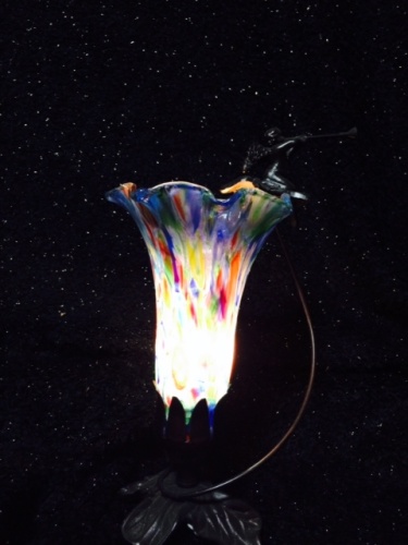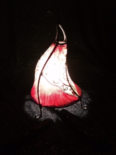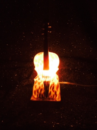 僕が持ってる明かり(電気スタンド)の中で、最もカッコいいけど実用性に問題があるのが、これだ。画像では見えにくいけれど、足元にはハイヒールが一足あって、貴婦人風の帽子が洒落ている思い切ったデザインなのだ。帽子型のシェードはガラス製で重いから、少し取り扱いにくいのだけれど、これも、一目見たとき欲しいと思った。でも、最初から今までお蔵入りなのはこれもそうだ。ふさわしいシーンがえられないからだ。これはショップのショーウインドーがいい。ショップをしたことはあっても、これにふさわしいショーウインドーはなかった。 このスタンドの居場所を見つけようと思う。 ひとつ、候補が浮かんでいる。