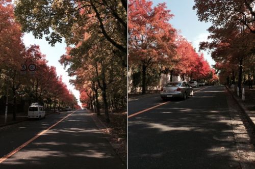 秋のクライマックスはここが圧巻なのだ。 ここは、最初見つけた時とても感動した。マイシークレットスポットだった。というのは、当時は有料老人ホームの館長で、職場まで30分ほど歩くことが多かった。きっかけは顧客であるご入居者のひとりが歩いておられるのをバスから見たことだった。その方は少し難しいほうのお客様だったのだけど、後日、おみかけしましたと言うと、毎日ウォーキングしているのでというお話だった。それに軽い感動を覚えて、バスじゃなく歩くことにしたのだった。 そのおかげで、このシークレットスポットを見つけたのだ。もちろん、知る人は知っている場所だったし、わざわざ訪れる人が年々増えていった。 この場所を知ってから16~7年経つけど、その間二度死線を越えそうになった。だから、秋になると見たくなるのは、また見れたというかすかな喜びと、今年も見ておきたいという感傷的な気持ちが重なるのだ。 妻も気に入ったようだし、娘も気に入ったらしいので、娘の子供が小さい時にも連れて行ったけど、子供は上のほうは見ないで下ばかり見ていた。今年はもうTWO BOYSだし上の子はどうかなと思ったけど、ふたりともはしゃいで凶暴化してはいたけど紅葉には関心がなかったようだ。 そうだな。紅葉は未来しかないような世代には響かないようだ。紅葉はどこかセンチメンタルなものなんだな。 帰って駅に降りたら、5歳になったばかりの子が、「ながたびだったなあ、」と言った。