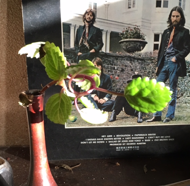 朝、いつもどおり実家の古家を点検していると、暗い玄関にドアの隙間から朝日が差しこんで、一輪挿しをライトアップしたみたいになった。壁には昔のレコードジャケットがあるので、背景のままで撮った。綺麗だ。そう感じてうれしくなった。ちょっと絶不調だったし、おまけに足の付け根の長年の異物を切除したばかりなので、自転車も乗れないし、かなり植物状態だった。外に出てゆっくり歩きはじめると、見るものがどれも美しく感じるのだった。並木道の柳の木の肌が黄色く染まっているのに気付いて、不思議な感じもして、なぜ気付かなかったのだろうと思った。側溝の淵に、苔類が綺麗に育っているのも、歩いているから気付いたことだった。普段から車嫌いなので、自転車のほうが車よりも移動中の視野が楽しいと思っているのだけど、自転車よりも、歩いているほうがずっと、目に入るものがちがうなと思った。
