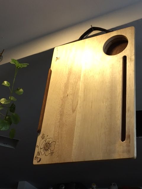 今乾燥中で明日引き取りに来るMさん作のラップデスクの天板部分だ。ネットで見つけてくれた僕のサイトで、わずか2キロの近くに住んでいることを知って、手づくり体験に通ってきてくれた。勤めてきたIT企業をやめたばかりで、思い出づくりにと思ったそうだ。彼女の発案はオリジナリティがあったので、1回3時間程度の作業を、普通は3回で済むところを、6回通って来た。手前部分はノートPCなどの滑り止めで、先のエッジ付近のスリットは、タブレットを差し込んで斜めに利用できる。左側はマグカップホルダ―だ。そして、取っ手をつけたので、今はたまたま塗装ニスの乾燥に吊り下げる役目をしている。ちょうど今僕はウッドバーニングを試みているので、すぐ刺激を受けたのか彼女流イラストを入れたのだった。クッションも、選んだ生地は意外にも渋いものだった。楽しんでくれたみたいなので、嬉しい。僕のほうが、嬉しい。ラップデスクで縁が生まれる人は、ほんとにたまになんだけど、不思議にどの人ももっている。Something specialをもっている。