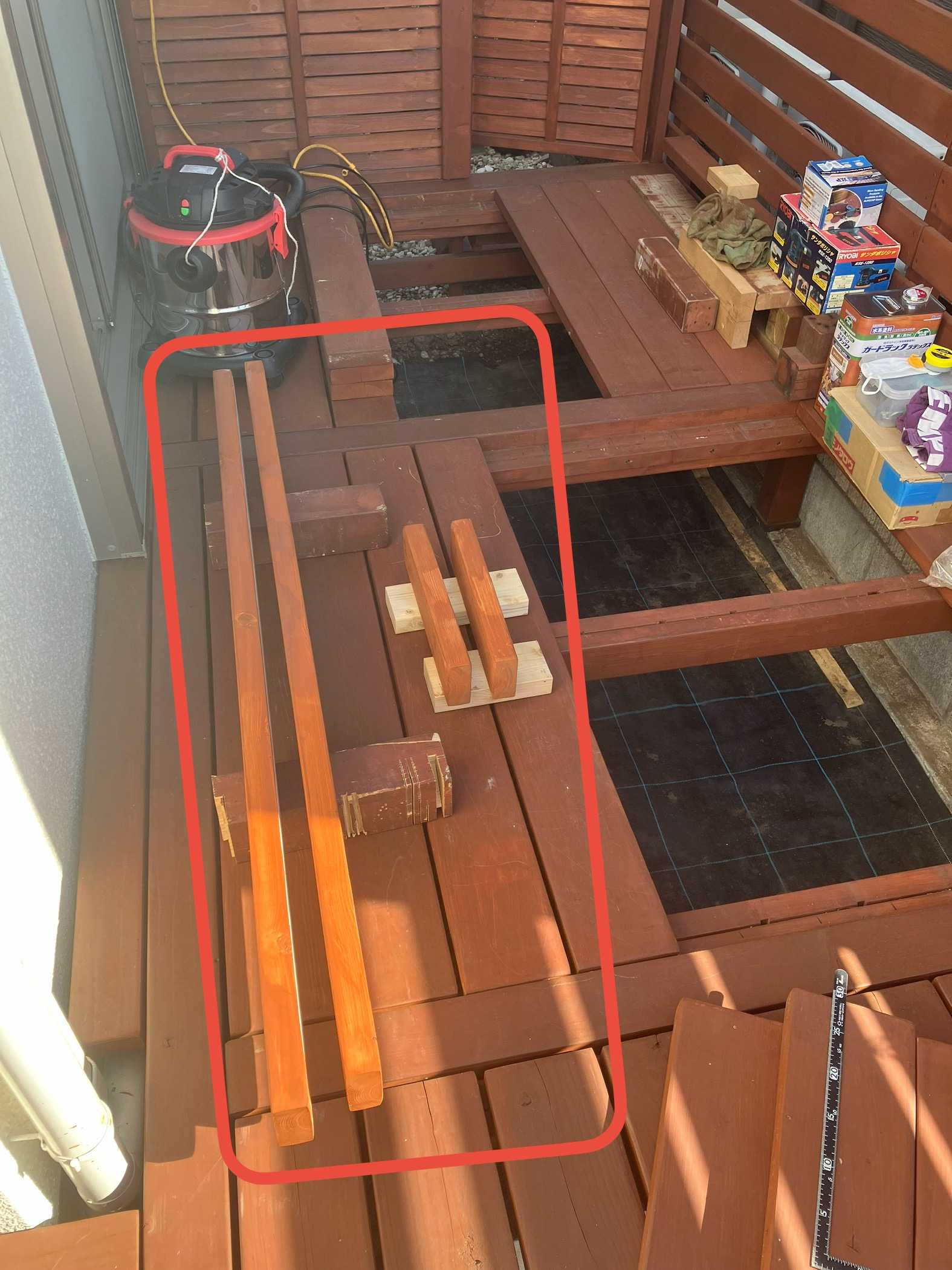 材料はカット購入済みでしたので、サンディングからのステイン2度塗りからスタート 狭…