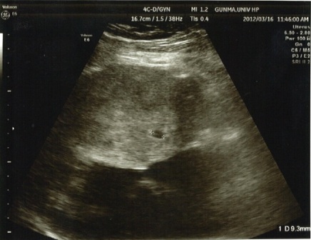 妊娠5週と4日目という意味らしい。昨日、診察行ってきました。その中で解った事ですが、私は5w4dだそうです。胚移植したのが、先月の22日なんだから、そこから計算すると3w2dよね?採卵した時から?と考えても3w4d。なのに5週・・・不思議な計算・・・まぁ、先生が言うんだからそういう事になってるんでしょうが・・・あいかわらず、お腹も張ってて卵巣も腫れてます。でも、右だけで左はさほどでもないとか。心配していたOHSSも血液検査結果が良好なので、見た目ほど心配なさそう。今のままなら、入院もしなくていいみたい。そして、ついに卵のう確認できました!あのど真ん中の ↑ ちょぽんっとしたやつですって現在9.3mmだそうです。大きさ的には4週目位のサイズだとか・・でも、血液検査のHcg値も10,000越え、で順調だそうです今の所、私のお腹が張ってしまって痛いのを我慢しとけば、すべて順調・・・という事になってますまぁ、良かった・・・のかな?