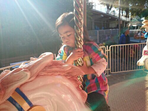 ミニ動物園に行って来ました♪ モルモット抱っこしてキャベツあげたり、 ヤギさんや豚さんに葉っぱあげたり、 楽しそうでしたょ🎵 向こう側に見えてる公園へ行こうとしましたが、カートのままだと段差があり不可能だったので車で移動。 後々気付いたけど、少し登った所に道有りました(笑) ちょっとした乗り物50円で良かったかも。