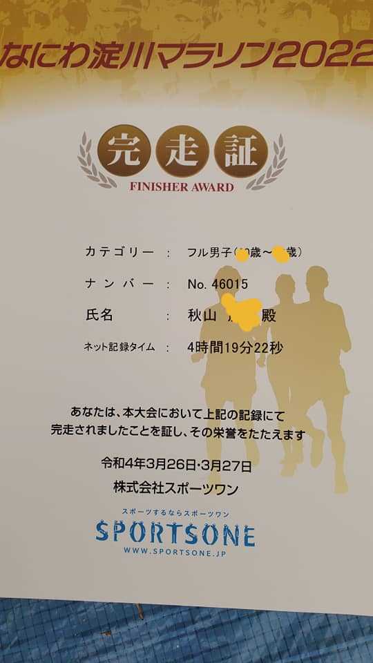 スタートしてハーフまでは調子が良くて久々にサブ 4 を出せる喜びに満ちてたんやけど ……