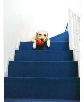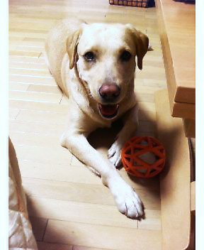 うちの階段にはジュータンが貼ってあるので掃除機を使わないと掃除ができません。で、今私は階段の下のほうから1段、1段掃除機をかけています。クッキーはボールをくわえ、私を追い越し、上のほうでスタンバイこれからクッキーの遊びが始まります。人が必死に掃除をしているのにクッキーはくわえたボールを口から放し、下に転がします。そのボールはもちろん私にぶつかってきます。私はそのボールをクッキーに投げ返します。それを口でキャッチ私がクッキーの近くに上がってくるまで何度もボールを落としてきます。まあ、つい私もボールを投げ返しているのですが・・・いつも、終わってから階段を見ると、きれいになっているのかどうか怪しい感じです。クッキーは遊びを見つける天才かしら・・・「そう、天才で~す」あラブラ♪かラブラ(どっちが遊ばれているのかわからない私のウェブショップです)