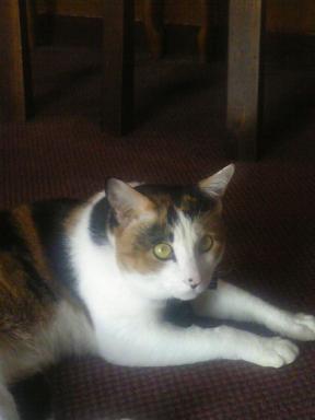 はるばる来たかいありましたよ!メスのフクちゃんも、オスのた~ちゃんも、人見知りせずなでなでされるままになってくれました。キレイな三毛ちゃんです。