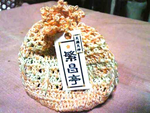 写真は繁昌亭のおみやげで、この中に飴ちゃんが入ってます。大阪のおばちゃん必須アイテムの手編みの飴ちゃん袋。おかんに買って帰りました。