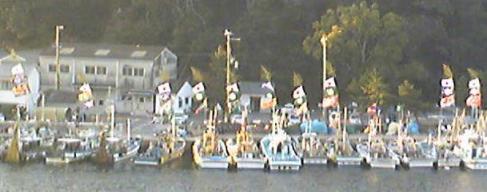 写真は、室津の港に泊まっている漁船。お正月らしく満艦飾です。