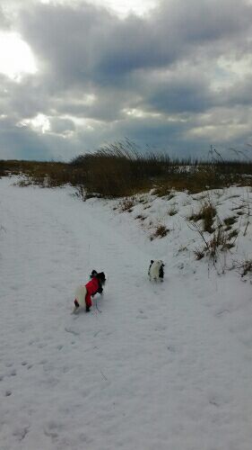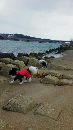 雨が降ったら散歩はお休み。 天気予報では 昼から雨だったので、 降る前に海岸へ。 ちゃーむも、ナッツも 楽しそう。 寒くても気にしない! 今日は遠目に知らないわんこを 何頭か確認できたので、 雨予報見て、時間をずらしたのかな?! 雪が積もる前に どこんちのワンコも たっぷり散歩させてもらわなきゃね!