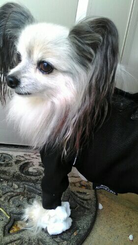 近所の遊歩道を一時間ほど 散歩して帰ってきたら 足元がこんな感じ。 こんな感じで、 ゆるーーーい散歩ですが、 帰りは雪玉が重く、 冷たくなるので、 雪玉を溶かす設備のないところには 遊びに行けません。 雪が積もると、 行動が制限されてしまう 長毛犬たちなのです…。 スノードッグガード【SM】 ボディに雪玉が付かないのは アルファアイコンの服のおかげ。 ちゃーむのが撥水性が失われてきたので 新調しなきゃならないかなあ・・・。
