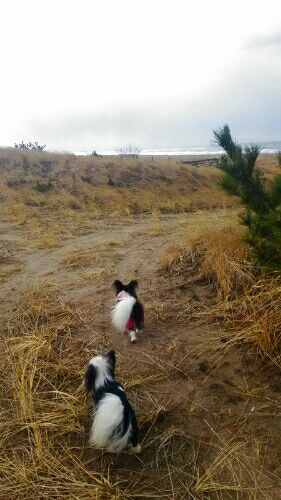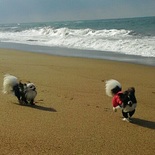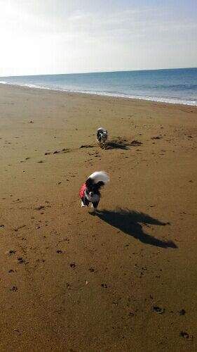 明けましておめでとうございます。 今年も、新年早々、 海岸散歩することができました! 多少、風は強いけれど、 追いかけっこして体を温めてます。 雪がないって、幸せです。 家族はスノボーしに わざわざ遠くの山まで 出かけなきゃならなくて 雪が降らないのが悲しいみたいですが。 海岸までの運転も楽々! 幸せな一年のスタートです。 走ってないと、寒くて、 渋い顔のちゃーむ。 先月から、 朝ご飯を残しがちになり、 胃液を吐くこともあり、 ちょっと心配なのですが…。 いつもと同じ時間に 同じことができなくて、 いつ散歩にいくの~? と、寝ていても 私の動向をチェックしていた 午前中のなっちゃん。 午後からお散歩できて、 良かったね♪