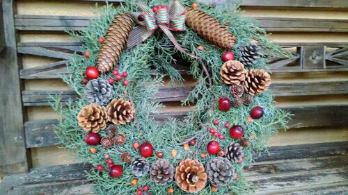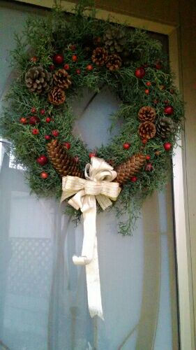 毎年恒例、 我が家の玄関に飾る フレッシュリースが完成! 偽物じゃない、 天然ものばかりで 作り上げます。 (リボンはのぞく。) 先日、アップしたリースは 躾教室の先生にプレゼント。 たいそう、喜んでくれました ローズヒップや、姫林檎の赤色が いい味出してます。 土台のブルーアイスは 今年、工事で一本倒したので、 あと一本しかありません。 貧弱な方が残っているので、 来年はリースを作れるだけ 枝があるかどうか・・・。 変な空模様の中、 なんとか雨の合間を縫って 散歩できました。 雨雲レーダー様のおかげで、 濡れずに散歩できる幸せ 検索かけつつ、散歩しながら スマホにして良かったなあ、 って思う私です(笑)