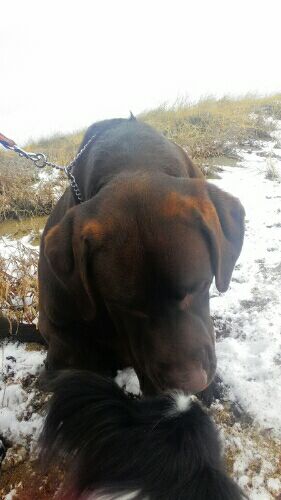 今日の散歩は寒かった。 マイナス気温の海岸で風が吹けば 体感気温が下がる、下がる~。 チビッコたちは ひたすら走って暖をとる。 途中、ラブラドールの兄さん、 タフィーに遭遇。 ちょちょっと挨拶して終わり。 明日はもっと寒いんだって! 冬はあと2ヶ月も続くのね…。 冬眠したいなあ。
