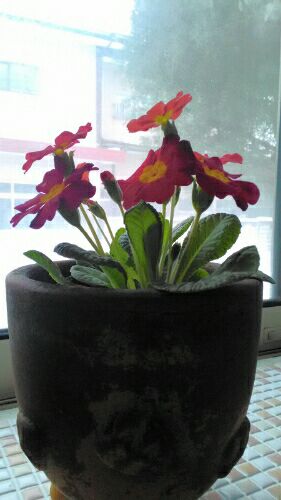 お正月にスーパーで買い物した時にオマケでいただいたプリムラ。雪降る中じゃ、土いじりしたくなくて、空いていた鉢にポリポットのまま入れてあります。冬場はお日様がほとんど顔を出さないからか、蕾が開と薄い赤色?朱色?みたいな色で咲くようになりました。秋田じゃ、南向きの出窓でも日光浴できないのよ。そう言えば、まだ一度も水もあげてない。乾かないから液肥もあげられない。春まで元気でいてくれたらいいのだけれど…。変わり咲きプリムラジュリアン ビクトリアーナ9cmポット個人的にはこんな色合いのプリムラが好きです~。
