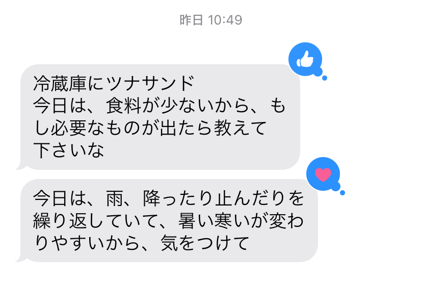 昨日の、主人からのメッセージ。