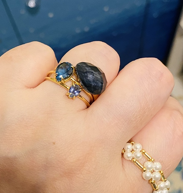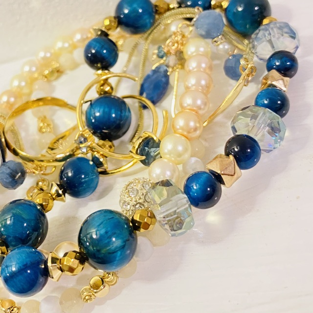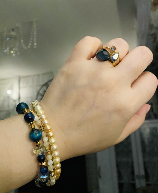 濃い青石とゴールドの組み合わせ