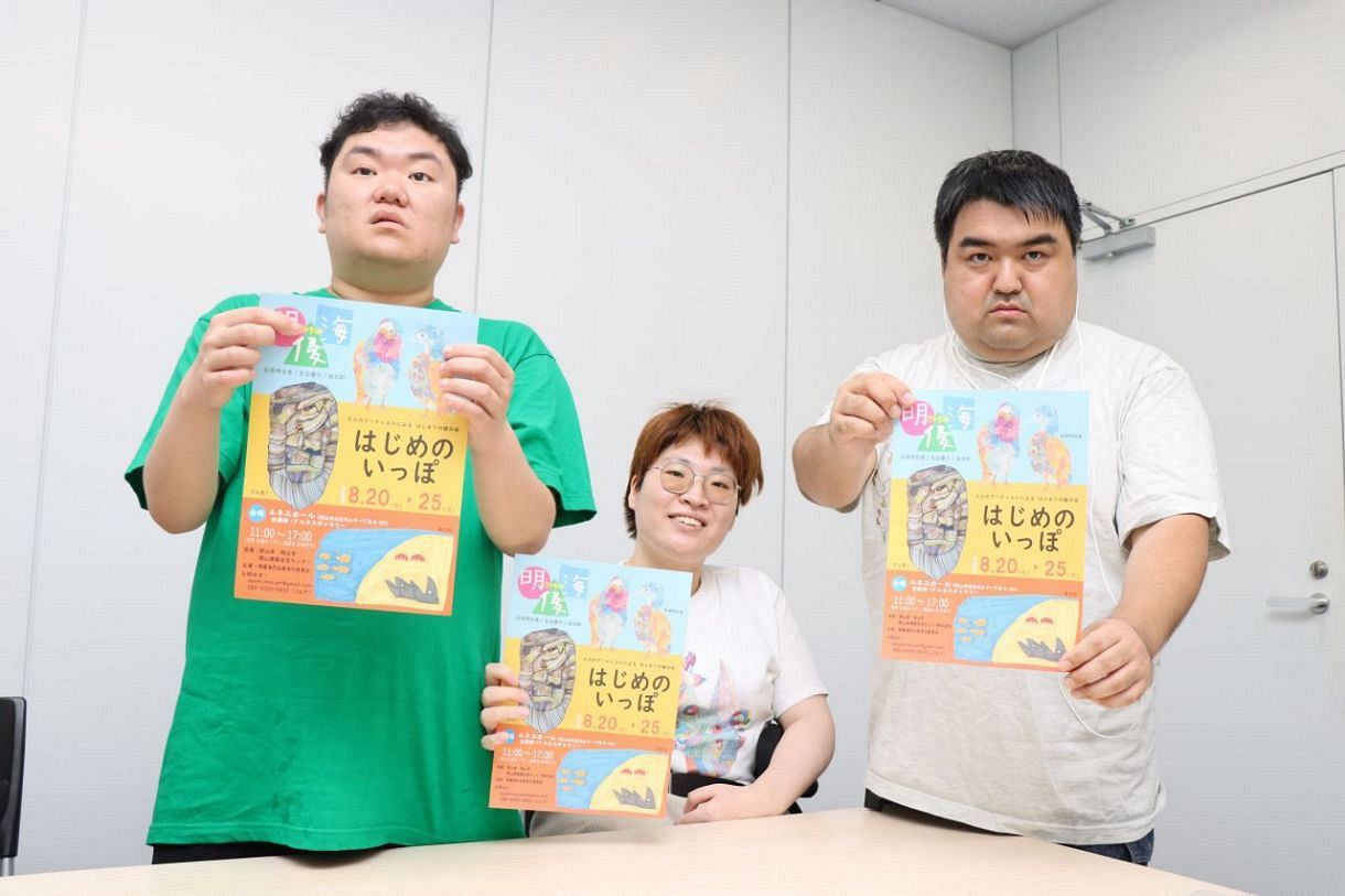 岡山の障害者アーティスト団体結成 20~25日に初の展示会岡山県内の障害者アーティスト3人がグループ「明優海(あゆみ」を立ち上げた。自分たちの作品や活動をPRし、同じような境遇の表現者たちの活躍の場を広げていくのが狙い。20~25日に初の展示会を岡山市内で開く。3人は「一生懸命に描いた絵を見てほしい」と話す。 点描画家の石原明日香さん(23)=岡山市、動物や心の中の世界を自由に表現する文谷優介さん(29)=倉敷市、生き物を中心に素朴なタッチで描く海太郎さん(34)=岡山市。それぞれのハンディと向き合いながら、県内外で個展を開いたり、企業の依頼で商品パッケージをデザインしたりと精力的に活動している。 2023年5月、岡山市内のイベントで3人の母親が出会い、「障害があっても好きな絵を仕事にしていける社会になってほしい」との思いが一致したのがグループ結成のきっかけ。3人の名前から一文字ずつ取り、それぞれが前に進み、自分のペースで歩む人たちも応援したいとの思いを込め「明優海」と名付けた。 初の展示会は「はじめのいっぽ」と題し、岡山市北区内山下のルネスホール1階ルネスギャラリーで開催。生き物をモチーフにした絵や抽象画などそれぞれが20点を展示、一部は販売する。3人の作品をモチーフにしたグッズも用意する。 石原さんは「それぞれが誇りを持って活動している姿を伝えたい」、海太郎さんは「自分の気持ちを存分に表現した絵を楽しんでほしい」、文谷さんは「作品を見て優しい気持ちになってもらえたら」と話す。 グループは今後、定期的に展示会を開く。併せて、アーティストが講師を務めるワークショップ、3人の母親が子育てなどをテーマに話す講演会も企画していくという。 午前11時~午後5時(初日は午後1時から、最終日は4時まで)。入場無料。すごろくになるオリジナルのリーフレットを先着200人に贈る。初日は3人が在廊予定。問い合わせは文谷さんの母由香さん(080―4550―5835)。[山陽新聞]グループを結成して初めての展示会を開く(左から)文谷さん、石原さん、海太郎さん素敵な企画ですね。お母様方の子育ての講演も楽しみですね。☄にほんブログ村にほんブログ村