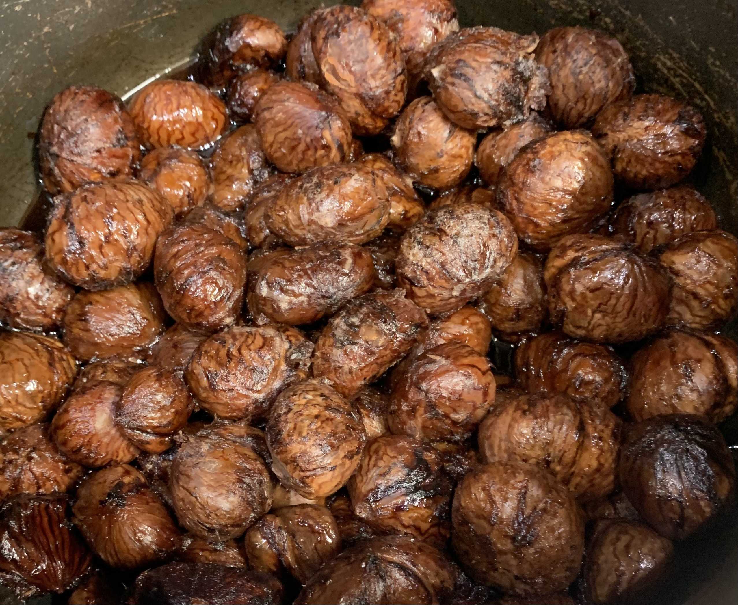 午後、栗1.5kgの皮剥きをして、渋皮煮を作りました。明日までお鍋のまま置いておいた方が…