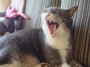 眠いニャ~~以前、猫の本に、猫は眠いからあくびをするのではなくて、これから活動するために、頭を覚醒させるためにあくびをするのです。と書いてありました。確かにあくびをした後は、すぐに起きちゃうことが多いですね。この写真を撮った後も、ソファから降りてきて、このブログを打っているPCの横に座っています。今日は良いお天気お昼前から出かけるので、今朝は早めにお洗濯を始めてます♪セラピスト活動を主に書いているブログです「愛しい日々」赤ちゃんを心待ちにしている方のコミュです「自然・こころ・からだの声を聞く」