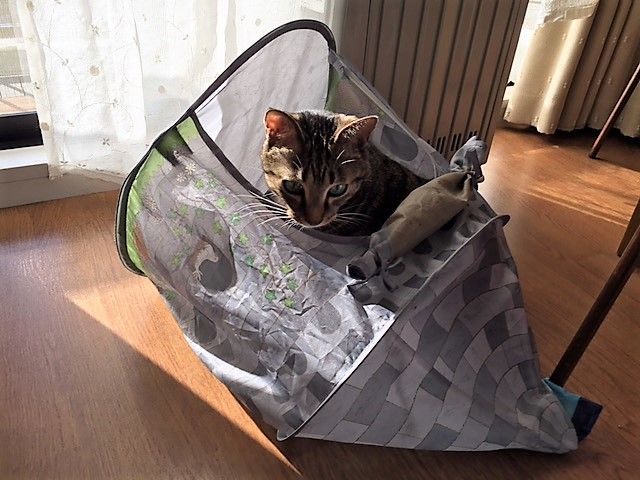 冬至のかぼちゃも食べ損ね、柚子風呂にも入れないうちにクリスマスイブ。クリスマスが楽しみだったのは子どもの頃までで、アルバイトができる年齢になってからは、この日はいつも働いてたな〜。その昔、古代ローマではクリスマスの12月25日というのは、キリストの誕生とは関係なく、収穫祭や太陽神の誕生祭が行われていたそうですね。だから私も食べることに困らずに生かしていただけることに感謝をする、という日にしたいと思います。 今日ではなく最近のキキですが…。お気に入りのマカロンベッドで。とまとの写真がここのところなくて、代わりにこの仔です。ミツバチちゃん。先日、干しておいたパーカーを取り込もうとしたら、フードの上に乗っていたのを発見。飛んでいきなさい、とうながそうと思ったのですが、この日は夜に雨風がひどくなるという予報。それならここで休んで、明日雨が上がったら行けばいいよ、とパーカーはそのまま物干しざおに吊るしておきました。我が家のベランダは奥行きがあるので、よほど強く雨風が吹き込まなければ濡れません。次の日は「またたび家」のボラ。(23日アップは月曜日になりますm(__)m)夜帰宅したらパーカーはすでに夫が室内に取り込んでくれていました。ミツバチちゃんは?フードの上で死んじゃってた。あー…(´Д` )きっと、フードの上を最後の休む場所にしたんだね。無理に促さなくてよかった。スズメバチなど攻撃性の強いのは苦手だけど、ミツバチは好き。花も咲いてないベランダによくきてくれたね。冬至を過ぎて、昼間の時間がまた少しずつ長くなっていきます。寒さはこれからが本番なので、どなた様もどうぞ体調を崩されませんように。にほんブログ村にほんブログ村にほんブログ村