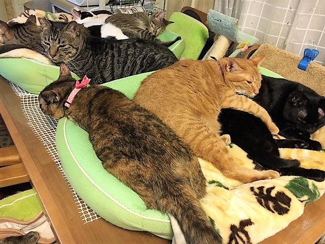 111回目のボラ。(2016年12月2日(金))その2111のぞろ目の回。111はエンジェルナンバーでは思ったことが実現するという意味を持つので、マイナス思考にならないようにしています。111とか1111とか222とか2222は、1日に1回は目にするので、毎日がポジティブシンキングよ~~!!!リビングの仔達。「リビング猫団子」この日も健在!手前のベッドの仔達は、ピンクのリボンが「かわらちゃん」茶トラ「みさとくん」黒が「くろまめ」「みさとくん」と「くろまめ」よぉーくみると、「くろまめ」の表情が微妙~ みさと思いっきり体重かけてる?↑奥のベッドの仔達。「なこちゃん(左)」と「しらかばくん」しらかばの顔がちょっとフレームアウトしてしまった( ;∀;)なこちゃんはカメラ目線を送った後、またコテ。。。と寝てしまいました。可愛い~。「ルテア」が「アカリ」の上に思いっきり手を乗っけてます。これはあまり重くなさそう。むしろアカリは安心して寝ているような気がします。「こむぎちゃん」えへへ^^のペロン。「あずきママ」と一緒に。「こむぎ」はたんぼ(ひげの部分。ウィスカーパッドと言います)がぷっくりで可愛いです「あずきママ」の寝顔がメチャラブリーじゃないですか!!「あずきママ」も「こむぎ」もおててがキュート「アイキちゃん」最近おめ目がしょぼしょぼなんです。。。(:_;)食欲もあるし元気だけど、でもやっぱり風邪気味なのかな。目薬しないとね。和室の仔達。「きぃちゃん」は左目のシパシパが良くなったかと思ったら、今度は右目がーーー。猫さんは風邪っぴきになると、眼に来ますね。目薬ぽちょんが欠かせません。ぶーんと飛んで寝てます( *´艸`)「きゅうちゃん」の舌がでていて、可愛かったので「そのまま!そのまま!」と言いながらパチリ!母にこの写真を見せたら、きゅうちゃんファンの母は、「可愛い仔ね~」とそればっかり「ケニー」なんだか真剣なお顔です。ちょっとこの写真はいつもと違うお顔に撮れてしまいました。本当はもっとイケニャンなんですけどね。寝起きだったかな?「ふじみちゃん」もあれれ?おめめがちょっとしょぼってますか?ヾ(・ω・*)なでなでがちょっと好きになってきたみたいです^^抱っこしたいな~。ふじみちゃん。「そうくん」スポットライトを浴びています( *´艸`)見返りいけにゃんになってますぞ。この「そうくん」はとっても甘えん坊なお顔(^^♪おててがなんだかでっかく見える~~!!「ホクト」は人がいる間はケージから出ています。でもお昼寝は絶対に自分の部屋に戻っているので(私が今まで見ている限りは)、その方が落ちつくのかな~?「ぼんぼん」はすでにトライアルが決まっていて、今月出発するようです。いつかな~。もう行っちゃったかな?がんばれ~~!!「プルちゃん」はお預かりの仔なので、お迎えを待っています。おうちに本当に帰れるのかな~。可愛い可愛いプルちゃん。やっぱり「私のおうち」で暮らしたいよね。「ミルキーちゃん」この日は、ぽかぽかと暖かったせいか、下で寝ているときもありました。でも私が動くたびに「ぎくっ!」とするのやめてよーーー。と思ったら、やっぱり高いところでぐーすか。まだまだ距離がありますね~。「ラニーちゃん」も美にゃんさんですよ。ヾ(・ω・*)なでなでは嫌だけど、おもちゃで遊ぶのは大好きなので釣られて寄ってきます( *´艸`)ぷぷぷもっと仲良くなりたいな。「愛ちゃん(キジトラ)」と「甘水」ここで二人で寝るのは狭いね~。でも甘水が先に寝ていたので、愛ちゃんはこの後別の場所に移動して寝ていました。「甘水」を見ると、いつも顔をしっぽが見えなかったら白猫だな、と思ってしまう。でも黒くて長いしっぽも、ちょっと微妙なハチワレも鼻横のぽちょんもみんな可愛いね~。「チャチャちゃん」はとっても臆病さんだけど、少しずつ自己主張をするようになってきました。こういうのってすごくうれしいんですよね。もっともっといろんな事を要求してほしいな。チャチャが一番幸せ☆と思うことをしてあげたいから。どの仔達にも幸せだにゃ~のお顔になってほしい。いつもいつもそう思う。シェルターボラは地味~な活動だけど、でもその地味~な中にも幸せがはじける瞬間がたくさんあるんだよね。またたび家に来た仔達みんなが幸せなお顔になれるように、私も元気パワーでがんばるのだ。気になる子がいたら猫さん達の詳細を見てみて♪くださいね。お問い合わせページもこちら⇒「またたび家里親募集ページ」ブログはこちらです⇒「またたび家の日常」物資送付先は、メールにてお問い合わせください。⇒nyankoouchisagashi@yahoo.co.jpまたたび家の「ボランティア応募フォーム」ができましたよ^^一緒にシェルターの猫さんたちのお世話をしませんか?*~* 楽天でお買い物する方へ *~*下記のバナーからお買い物すると、またたび家用のポイントが貯まります。貯まりましたポイントは全てまたたび家の物資にさせて頂いております。宜しければご協力ください。にほんブログ村にほんブログ