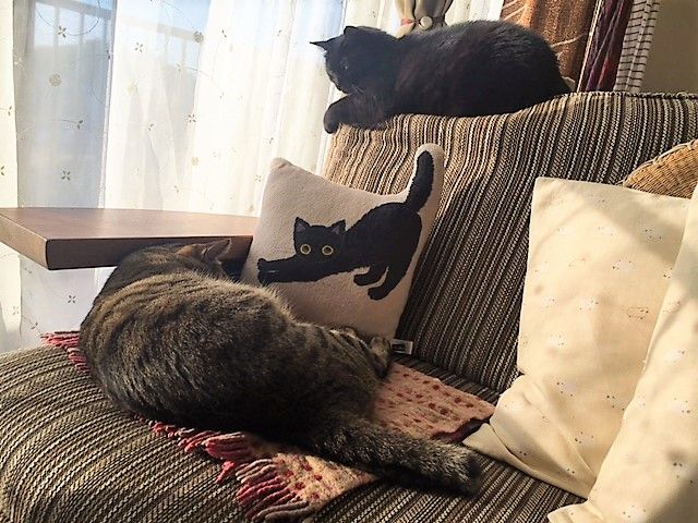 良い天気。郵便局に行き、急いで帰宅後こもって仕事。。。。あーあ、のんびり公園なんかでお弁当をひろげてみたいもんだわ。なんて思いながらも、我が家には猫たちがいるからね。やっぱり自宅で過ごすのも悪くないわ。肩が凝って眼と頭が痛くなってきたら、猫たちを見る。のんびりしている猫たちを見ればほぐれる~。で、またがんばろう!と再び開始・・・・。あ!!!とまと!!!!寝返りを打ったら端っこぎりぎり!落っこちるよ~。うぎゃーーーー。おまたおっぴろげーーー。必至につかまってます!・・・落っこちました。。。(´Д`)何食わぬ顔してキキの臭いをかぐ。「とまとったらおばかちゃんね」「ねこもソファから落ちる。。。はじかち・・・・(*'ω'*)」明日は空気がき~んと冷えるそうです。どなたさまも防寒対策ばっちりでおでかけくださいね。にほんブログ村にほんブログ村にほんブログ村