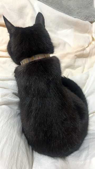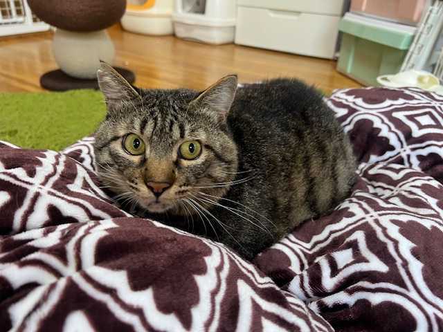 1690回目&1691回目&1692目&1693回目のボラ。(2025年6月8日&9日&11日&13日)梅雨入り。でもカラ梅雨も続きそう。でも大雨も続きそう。どっちだ。どっちも。*「みどりーの」がトライアルに出発しました!(6/11)*「コナン」と「哀」が一緒のおうちにトライアルに出発しました!(6/12)みんな幸せになれ! ※ がんばった「うぃうぃ」へ ☆検疫ルームの仔「はるひ」が「うぃうぃ」の供血猫として適合したようで、輸血用の血を分けてくれました。がんばってくれてありがとう。後日、見た目も変わりなく元気もあるのだけど、体調を崩してしまいました(;´Д`)食欲が急降下。。。。お腹も緩くなってしまったため、脱水も心配なので色々対処しています。早く元気になってずっとのおうちを探そうね。☆白血病キャリアルームの仔達「アロハ」がとっても甘えん坊になってきました。撫でて~♪遊んで~♪と甘えてくれるのがとっても嬉しい。「くろにゃ」は暑い日でもおこたの上で寝ています。熱中症にならないか心配になってしまう。でもさすがにそこまで暑くなるとちゃんと床の上に寝ていました。写真はおこたの上だけど(;'∀')「さばぞう」も暑くても潜るの大好きなのでこんな感じで過ごしていました(;^_^A「おれっちは我慢強いじょ」byさばぞうがまんしなくていいから~。だいぶくたびれてきたお布団の上でごろりん。代わりのものをみつけないと。あるかな~。「しまちゃん」すっかり抜歯の違和感もなくなったようで元気いっぱいです。よかった~ε-(´∀`*)ホッ食いしん坊だからいっぱい美味しいの食べたいもんね。しまちゃんもお布団でごろごろが大好きです。「ストラ」もおめめは相変わらずしょぼしょぼ。。。(´・ω・`)軟膏を使っていますがいまいちかな。。。塗り方の問題もあるかも。食欲も元気もあるけど、やっぱり目の違和感が元気の半分を奪っていると思う。早くきれいに治してあげたいな。「京介」はお腹の緩さをものともせずに(してほしい)爆食いしています。変顔撮れた。横になりながら爪とぎバリョバリョ。「京介」と「しまちゃん」「しまちゃん」の存在を意識しているくせに、何でもないを装う「京介」てへぺろでごまかす。「ルーチェ」が可愛い身体で戻ってきました!!!政宗ママ(元セイくん)が作ってくれたのです。ありがとうございます!!可愛い。。。まだあどけなさが残っているときのルーたんだね。大事にします。☆マーシールーム(FIVキャリア)の仔達「アサ」はちゃんと食べてくれて、部屋の皆とも仲良くのんびり過ごしています。やっと落ち着いたかな。。。気持ちも身体も。ウェットタイムの時間には、ちゃんと足元で待ってくれるのが可愛いし嬉しい(*'ω'*)元気でいようね。「ガッツ」のお口周りがまたちょっと怪しくなってきました。痛みが出てくると汚れるようになるのよね。カリカリはたくさん食べてくれるので、水分補給も兼ねてウェットフードもあげています。ただこちらはどうしても自分ではほとんど口にしてくれないので、スプーンや指につけてあげています。「ぎおん」もだいぶ今の環境になれてきたようです。写真はちょっといじけているみたいに見えるけど(;^_^Aもうちょっとまともな写真を撮ってきます。ナデナデもさせてくれるし可愛いです。「くろちゃん」の体調や食欲が不安定になってきました。結構食べてくれたね!という時と。。。全然だめだわ。。。という時と(;´Д`)脱水にならないように気を付けています。食べられるものを探すのも大変だけど、元気でいてほしいからがんばるよ。「フク」は譲渡会の日が怖くて(捕まえらえるのが怖い。そりゃそうだ)、その後遺症で不吉な予感がするとエアコンの上に乗ってしまいます。大丈夫がわかればこうしていつものようにのんびり過ごしています。猫って本当に繊細です。安心の場で怖いことがあったらどうしていいかわからないよね。「マンボ」のお顔が不機嫌そうに見えますが、そんなことないです。眠いと余計に眉間にしわがようるような顔になる(笑)じゃらしで遊んでくれるのを待っているので、時間を作って遊びますが。。。おばちゃんすぐに疲れちゃうのですよ。でも猫も実は犬と違って持続力ないのよね( *´艸`)「わらび」がベッドにすっぽりはまって寝ていました。ナデナデしているうちに、お腹出して万歳になりましたけど( *´艸`)好きだと思っていたウェットフードが、あれ?今日はいらないの?なんてことはしょっちゅう。「わらび」様の好きなものを差し上げるのも一苦労です。☆リビングの仔達「ブルーノ」はよく寝る仔です。前にも書いたかな。兄妹の中で1,2を争うくらいかも。あ、起きた! 眠そうな顔が可愛い。レンジの上でポーズ♪大きくなったね~。このまま抱っこして~と甘えてきました。また寝てる( *´艸`)でも気持ちよさそうだな。奥には「ふくこ」がいます。猫達がぐっすり寝ているとホッとする。甘えん坊の「ブルーノ」も卒業間近。寂しくなっちゃうな。いっぱい抱っこさせてね。「ルパン