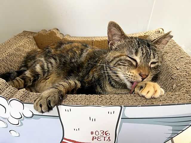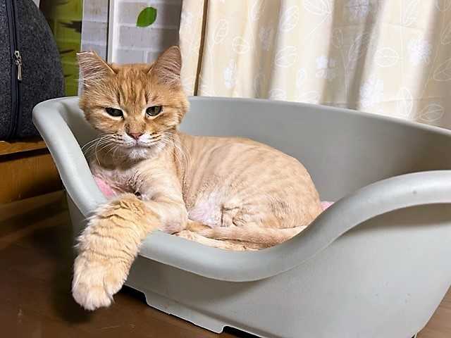 「なの」がお風呂爪とぎベッドでお手入れ中でした♪