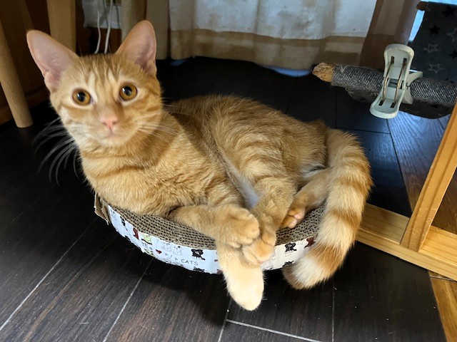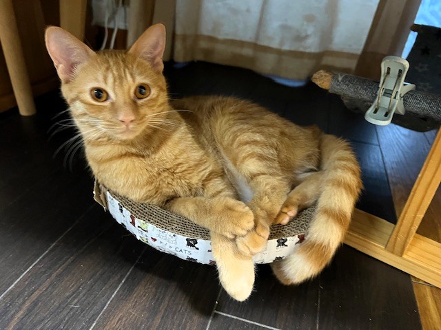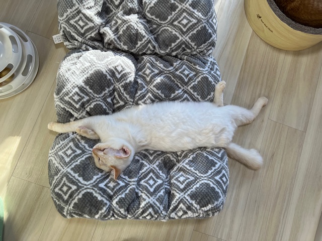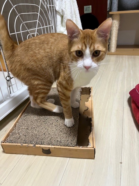 小さい爪とぎにピッタリサイズだったのに、いまやこんなにはみ出して。。。。