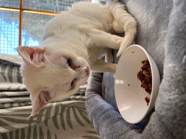 あげたウェットフードをいきなり食べ始めてくれたので、食欲はあるのかなと一瞬ホッとしたのですが。